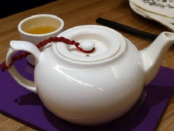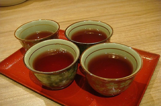 吃完所有餐點後,服務人員會先清理桌面,然後送上清口腔的熱洛神花茶。