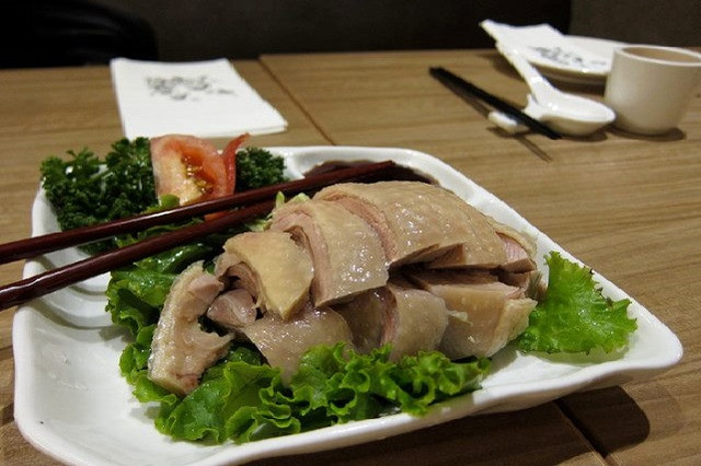 色澤好美的雞,外表油亮,略帶粉紅的肉身,斷面處的肌理分明,肉汁很豐富,吃起來有雞皮的脆與腿肉的彈性,皮肉間的肉凍化於口中,雞肉的香甜充份展現。
