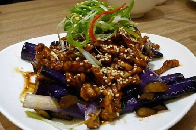 茄子切的好長好長一根,不是軟軟爛爛的那一種,京醬肉絲鹹甜鹹的,滋味挺不賴,超好吃的。