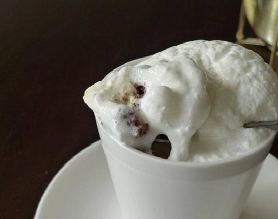 看起來像是一杯卡布奇諾,但這杯可不是用喝的,要用湯匙大力往杯底挖,才能完整地品嘗到「吃的卡布奇諾」,咖啡烤布雷和牛奶冰淇淋,再加上奶泡就已經是十足的卡布奇諾了,烤布雷和奶泡中還加入些許的威士忌增添風味,是一道十分具有成熟韻味的甜點。