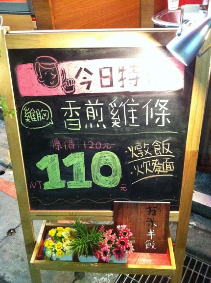 像小剛造訪的當天,好吃的香煎雞條套餐,原價120元,今日特價110元喔!可以搭配燉飯或炊麵喔!