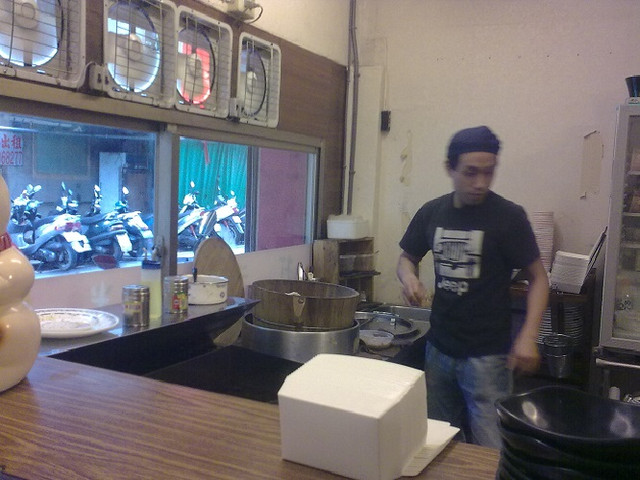 因為烹煮的地方在是內,所以坐在裡面用餐的人客,會覺得有點熱,小剛本人比較耐熱啦!所以覺得還好,倒是有一對情侶一走進來,小姐就問說:「老闆你們有開冷氣嗎?」小剛在這這裡要幫老闆一句說話,“人家真的有開冷氣,不會讓大家汗流雨下的用餐。”