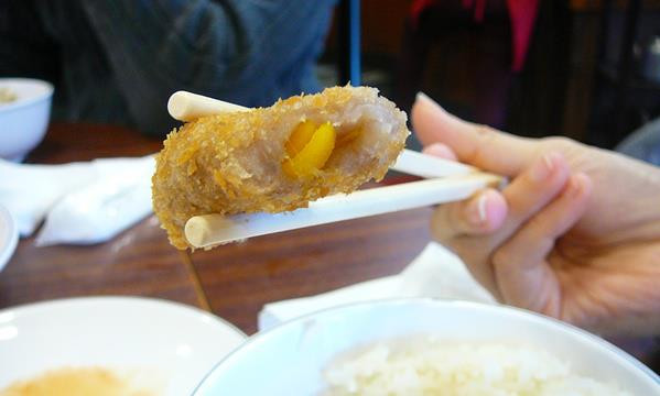 熱騰騰的芋條,帶著芋頭的纖維和蛋黃香氣,芋泥軟滑,咬在嘴裡芋香滿盈,裡面藏有一小塊鹹蛋黃,讓人欲罷不能,可惜很快就食用一空,小剛好愛這道說。